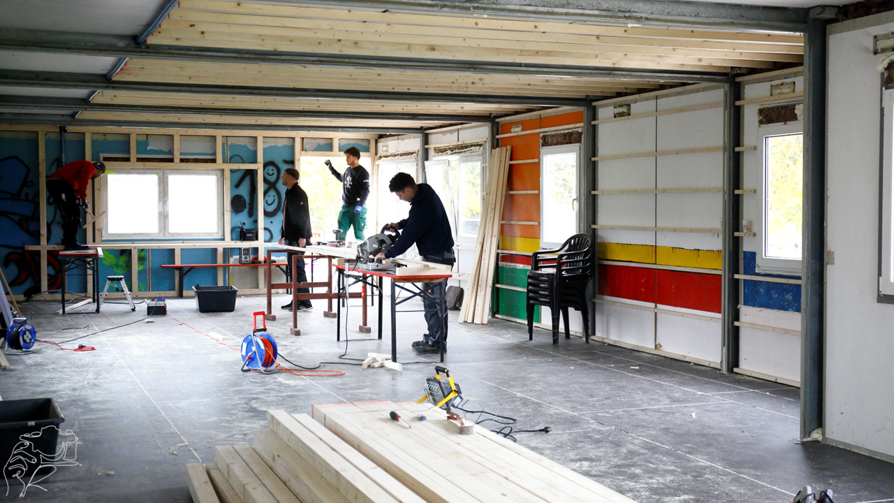 Veröffentlicht am 25.10.2025 in Archiv FußballjugendAm 18. Oktober fand in Westhausen der Spieltag unserer E-Jugend statt. Während auf dem Platz fleißig gespielt und spannende Begegnungen ausgetragen wurden, wurde oben am Sportplatz parallel am neuen Aufenthaltsraum weitergearbeitet.