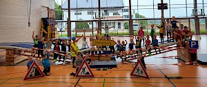 Veröffentlicht: 16.09.2025So lautete das Motto beim diesjährigen Ferienprogramm der Turnabteilung des TSV Westhausen in der letzten Ferienwoche. Von 9:30 bis 12:00 Uhr verwandelte sich die Wöllersteinhalle in eine Landschaft mit verschiedenen Bauprojekten. Aus den Geräten und Materialien wuchs hier ein stabil konstruiertes Hochhaus in die Luft, dort entwickelte sich Stück für Stück eine Autobahnbrücke weiter und an anderer Stelle entstand eine Schalungswand. Mit viel Einsatz der Kinder bei Planung und Bau aber auch Ausprobieren verging die Zeit für die rund 35 Kinder und die verantwortlichen Betreuerinnen Gitte Banas und Verena Heel wie im Flug. Ein großer Dank gilt auch dem Bauhofteam fürs zeitweise Entbehren einiger Straßenschilder :-)